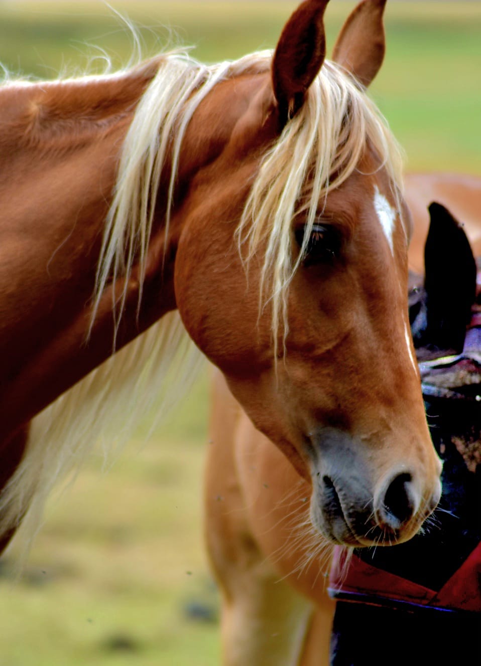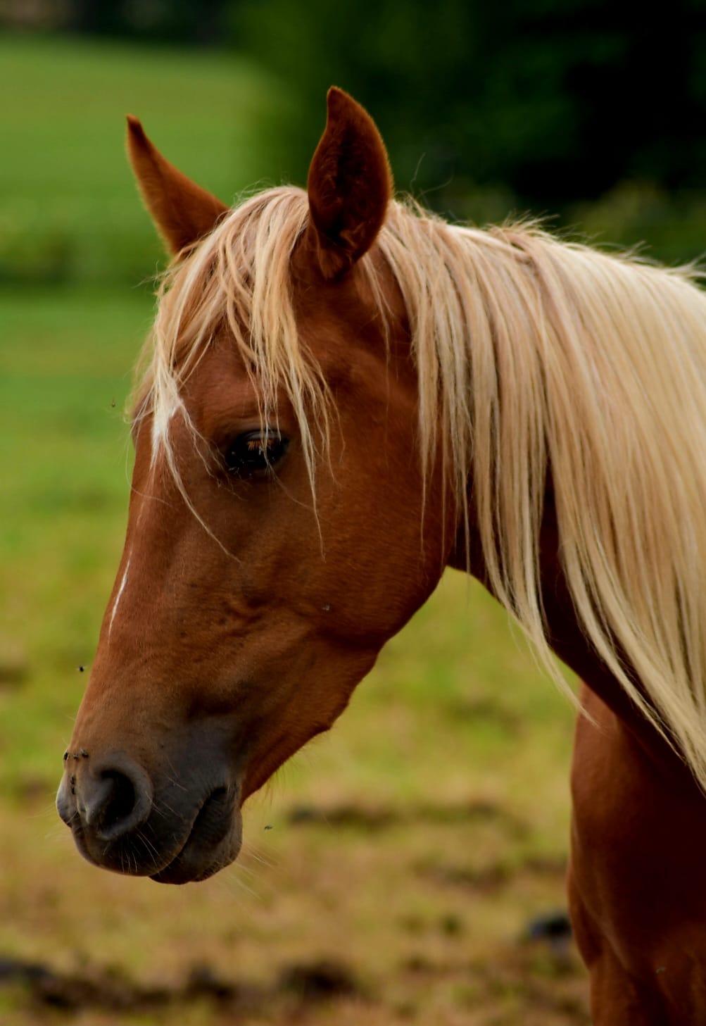 Snickers is used to tractors, cows, dogs, children, farriers, vets, being tied, trailer loading, and leading. He grew up in a herd and was kept in a stallion group until castration. Now, he lives 24/7 in a mixed herd and behaves excellently.