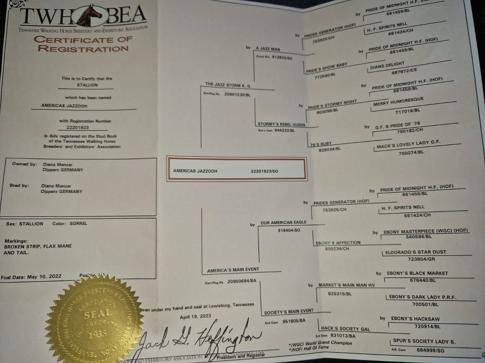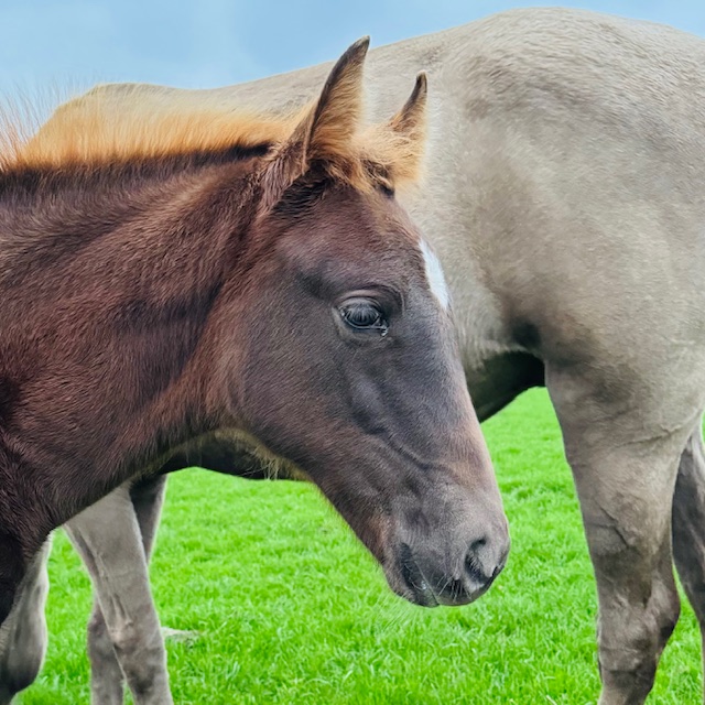 In April 2025, she gave birth without complications to her adorable filly “DOLLAR’S MARY-BLUE”, who is in perfect health. Mary is also a purebred Tennessee Walking Horse (Sire: HANDSHAKER’S BLUE SPLASH).
